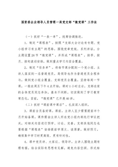 / 【七哥公文】2024年:国资委企业领导人员管理一局党支部“微党课”工作法+更多免费公文+VX:QiGeGongWen2024