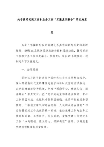 【七哥公文】2024年:关于推动党建工作和业务工作“五聚焦五融合”的实施意见+更多免费公文+VX:QiGeGongWen2024