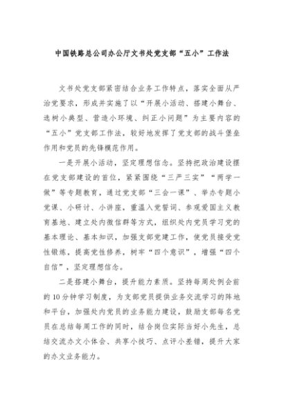 / 【七哥公文】2024年:中国铁路总公司办公厅文书处党支部“五小”工作法+更多免费公文+VX:QiGeGongWen2024