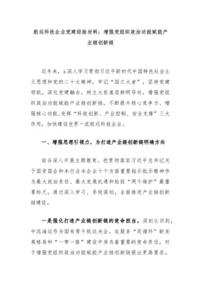 【七哥公文】2024年:航运科技企业党建经验材料:增强党组织政治功能赋能产业链创新链+更多免费公文+VX:QiGeGongWen2024