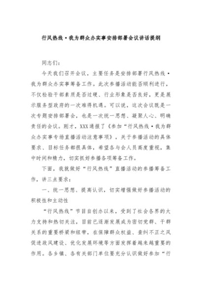 / 【七哥公文】2024年:行风热线·我为群众办实事安排部署会议讲话提纲+更多免费公文+VX:QiGeGongWen2024