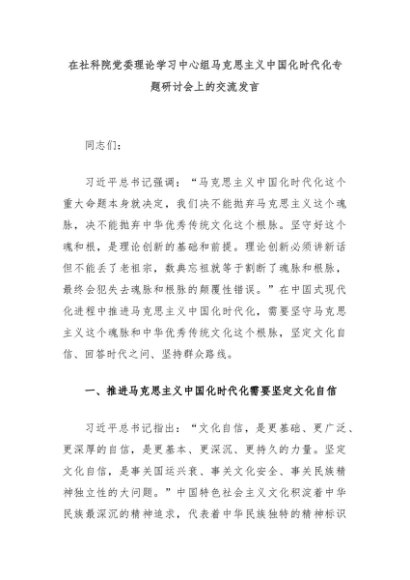 【七哥公文】2024年:在社科院党委理论学习中心组马克思主义中国化时代化专题研讨会上的交流发言+更多免费公文+VX:QiGeGongWen2024