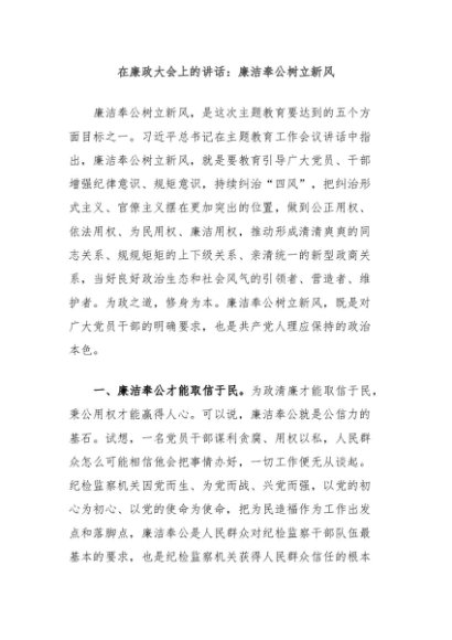 / 【七哥公文】2024年:在廉政大会上的讲话:廉洁奉公树立新风+更多免费公文+VX:QiGeGongWen2024