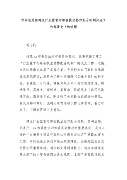 【七哥公文】2024年:市司法局在建立行业监管与综合执法协作配合机制试点工作部署会上的讲话+更多免费公文+VX:QiGeGongWen2024