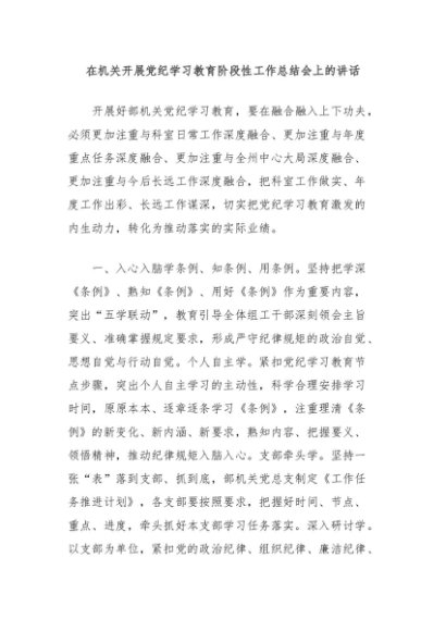 / 【七哥公文】2024年:在机关开展党纪学习教育阶段性工作总结会上的讲话+更多免费公文+VX:QiGeGongWen2024