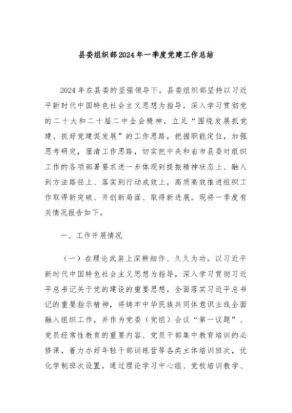 / 【七哥公文】2024年:县委组织部2024年一季度党建工作总结+更多免费公文+VX:QiGeGongWen2024