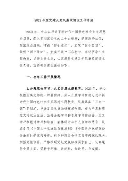 / 【七哥公文】2024年:2023年度党建及党风廉政建设工作总结+更多免费公文+VX:QiGeGongWen2024