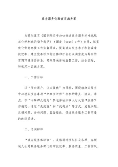 【七哥公文】2024年:政务服务体验官实施方案+更多免费公文+VX:QiGeGongWen2024