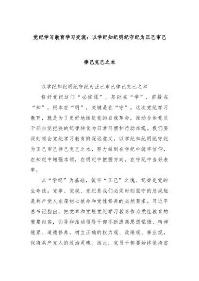 【七哥公文】2024年:党纪学习教育学习交流:以学纪知纪明纪守纪为正己审己律己克己之本+更多免费公文+VX:QiGeGongWen2024