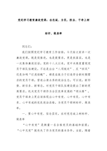 【七哥公文】2024年:党纪学习教育廉政党课:在忠诚、为民、担当、干净上树标杆、做表率+更多免费公文+VX:QiGeGongWen2024