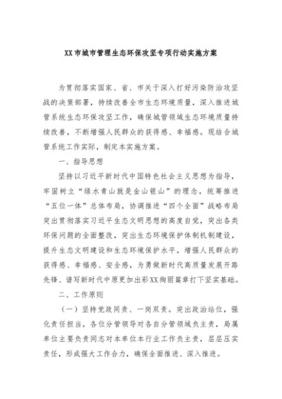 / 【七哥公文】2024年:XX市城市管理生态环保攻坚专项行动实施方案+更多免费公文+VX:QiGeGongWen2024