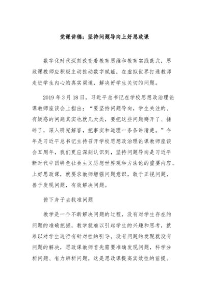 / 【七哥公文】2024年:党课讲稿:坚持问题导向上好思政课+更多免费公文+VX:QiGeGongWen2024