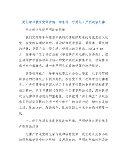 / 【七哥公文】2024年:党纪学习教育党课讲稿:学条例守党纪严明政治纪律+更多免费公文+VX:QiGeGongWen2024