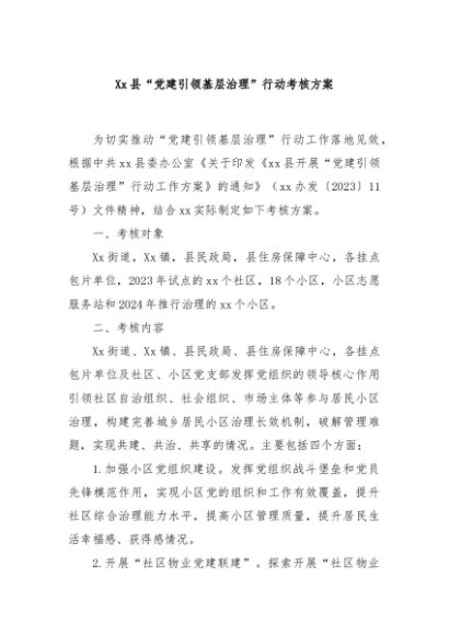 / 【七哥公文】2024年:Xx县“党建引领基层治理”行动考核方案+更多免费公文+VX:QiGeGongWen2024