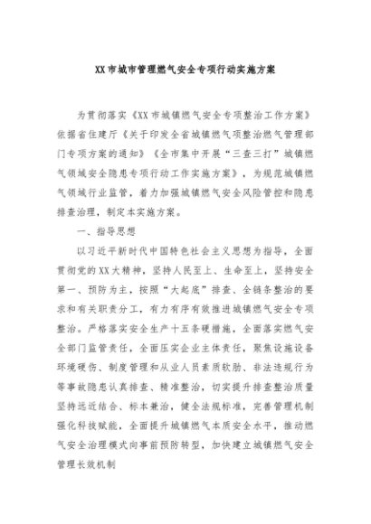 / 【七哥公文】2024年:XX市城市管理燃气安全专项行动实施方案+更多免费公文+VX:QiGeGongWen2024
