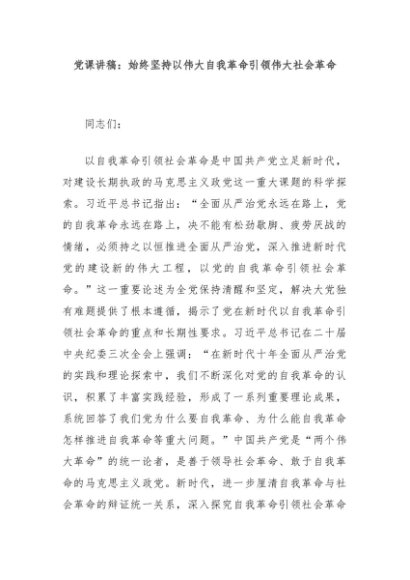 / 【七哥公文】2024年:党课讲稿:始终坚持以伟大自我革命引领伟大社会革命+更多免费公文+VX:QiGeGongWen2024