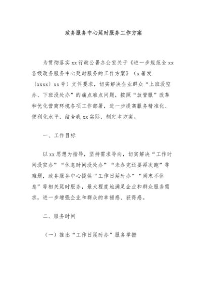/ 【七哥公文】2024年:政务服务中心延时服务工作方案+更多免费公文+VX:QiGeGongWen2024