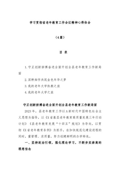 / 【七哥公文】2024年:(4篇)学习贯彻省老年教育工作会议精神心得体会+更多免费公文+VX:QiGeGongWen2024