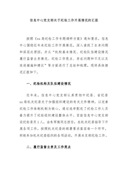 / 【七哥公文】2024年:信息中心党支部关于纪检工作开展情况的汇报+更多免费公文+VX:QiGeGongWen2024