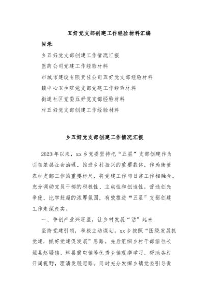 / 【七哥公文】2024年:五好党支部创建工作经验材料汇编+更多免费公文+VX:QiGeGongWen2024