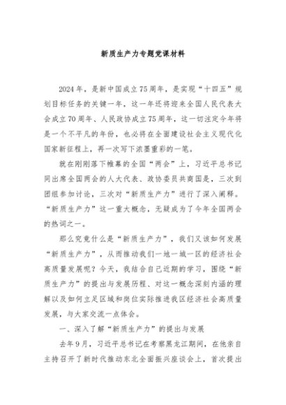 / 【七哥公文】2024年:新质生产力专题党课材料+更多免费公文+VX:QiGeGongWen2024