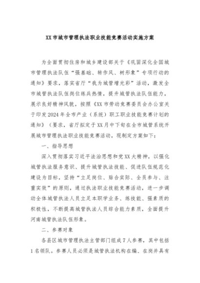 / 【七哥公文】2024年:XX市城市管理执法职业技能竞赛活动实施方案+更多免费公文+VX:QiGeGongWen2024