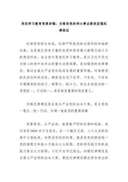 【七哥公文】2024年:党纪学习教育党课讲稿:为推进党的伟大事业提供坚强纪律保证+更多免费公文+VX:QiGeGongWen2024
