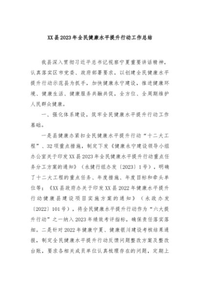 / 【七哥公文】2024年:XX县2023年全民健康水平提升行动工作总结+更多免费公文+VX:QiGeGongWen2024