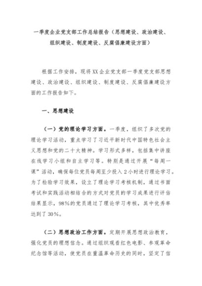 【七哥公文】2024年:一季度企业党支部工作总结报告(思想建设、政治建设、组织建设、制度建设、反腐倡廉建设方面)+更多免费公文+VX:QiGeGongWen2024