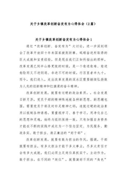 【七哥公文】2024年:(2篇)关于乡镇改革创新奋发有为心得体会+更多免费公文+VX:QiGeGongWen2024