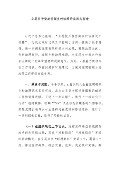 / 【七哥公文】2024年:全县关于党建引领乡村治理的实践与探索+更多免费公文+VX:QiGeGongWen2024
