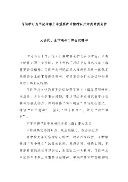 【七哥公文】2024年:传达学习总书记考察上海重要讲话精神以及市委常委会扩大会议、全市领导干部会议精神+更多免费公文+VX:QiGeGongWen2024