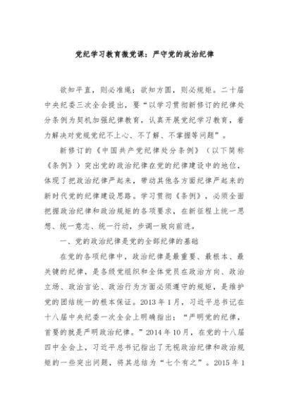 / 【七哥公文】2024年:党纪学习教育微党课:严守党的政治纪律+更多免费公文+VX:QiGeGongWen2024