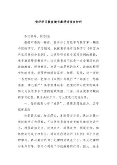 / 【七哥公文】2024年:党纪学习教育读书班研讨发言材料+更多免费公文+VX:QiGeGongWen2024