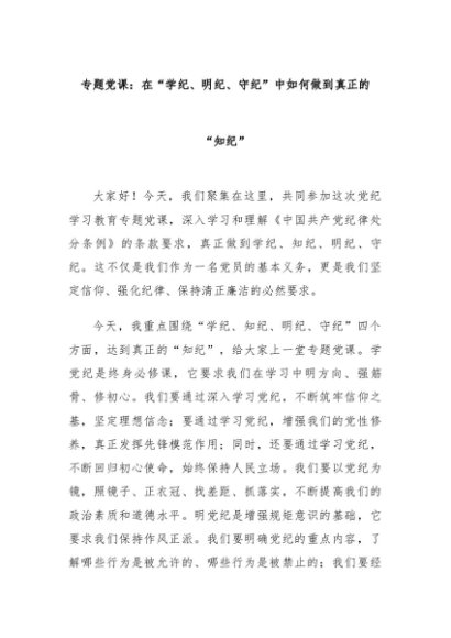 【七哥公文】2024年:专题党课:在“学纪、明纪、守纪”中如何做到真正的“知纪”+更多免费公文+VX:QiGeGongWen2024