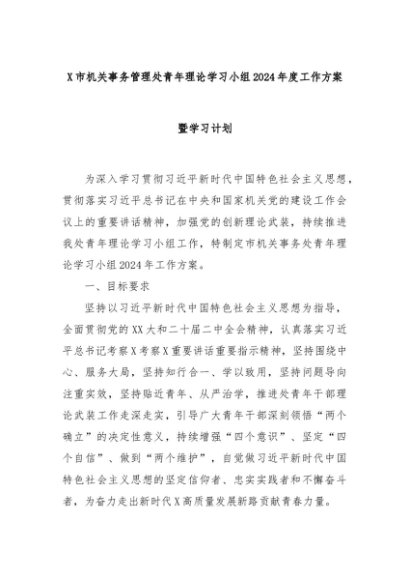 【七哥公文】2024年:X市机关事务管理处青年理论学习小组2024年度工作方案暨学习计划+更多免费公文+VX:QiGeGongWen2024