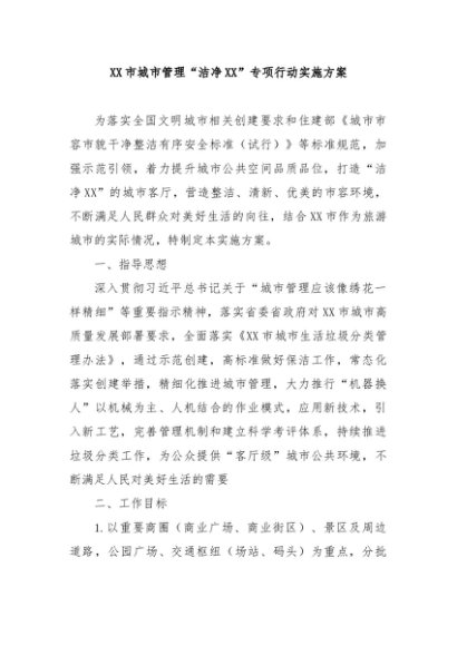 / 【七哥公文】2024年:XX市城市管理“洁净XX”专项行动实施方案+更多免费公文+VX:QiGeGongWen2024