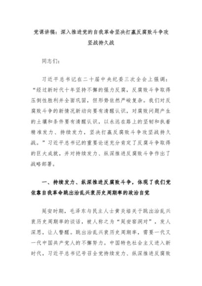 【七哥公文】2024年:党课讲稿:深入推进党的自我革命坚决打赢反腐败斗争攻坚战持久战+更多免费公文+VX:QiGeGongWen2024