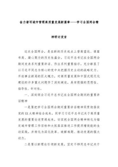 【七哥公文】2024年:奋力谱写城市管理高质量发展新篇章——学习全国两会精神研讨发言+更多免费公文+VX:QiGeGongWen2024