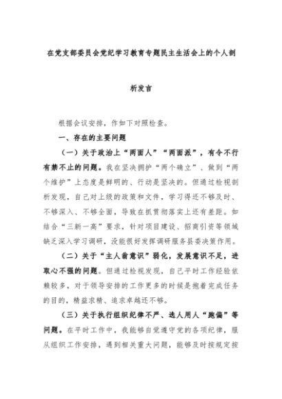 【七哥公文】2024年:在党支部委员会党纪学习教育专题民主生活会上的个人剖析发言+更多免费公文+VX:QiGeGongWen2024