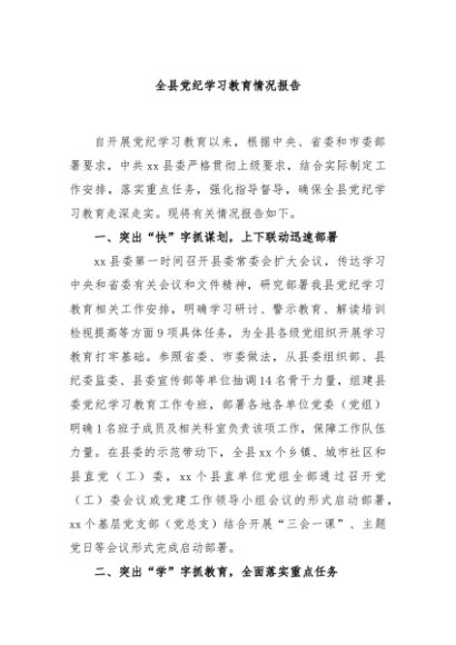 / 【七哥公文】2024年:全县党纪学习教育情况报告+更多免费公文+VX:QiGeGongWen2024