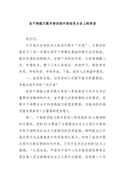 / 【七哥公文】2024年:在干部能力提升培训班开班动员大会上的讲话+更多免费公文+VX:QiGeGongWen2024