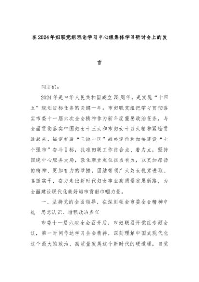 【七哥公文】2024年:在2024年妇联党组理论学习中心组集体学习研讨会上的发言+更多免费公文+VX:QiGeGongWen2024