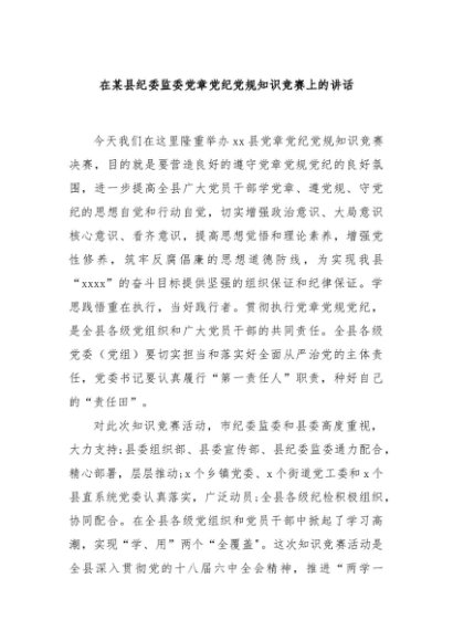 / 【七哥公文】2024年:在某县纪委监委党章党纪党规知识竞赛上的讲话+更多免费公文+VX:QiGeGongWen2024