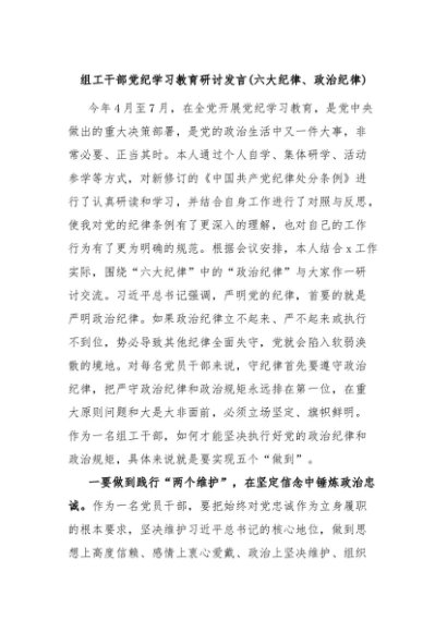 【七哥公文】2024年:组工干部党纪学习教育研讨发言(六大纪律、政治纪律)+更多免费公文+VX:QiGeGongWen2024