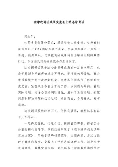 / 【七哥公文】2024年:在学校调研成果交流会上的总结讲话+更多免费公文+VX:QiGeGongWen2024