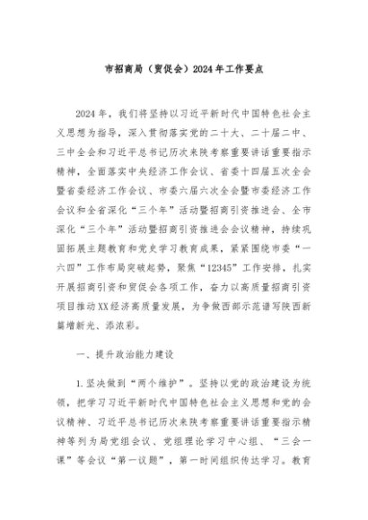 / 【七哥公文】2024年:市招商局(贸促会)2024年工作要点+更多免费公文+VX:QiGeGongWen2024