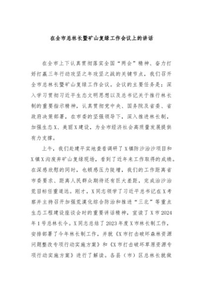 / 【七哥公文】2024年:在全市总林长暨矿山复绿工作会议上的讲话+更多免费公文+VX:QiGeGongWen2024