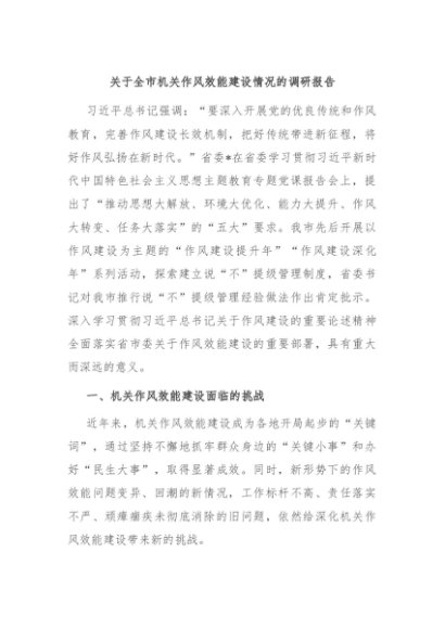 / 【七哥公文】2024年:关于全市机关作风效能建设情况的调研报告+更多免费公文+VX:QiGeGongWen2024