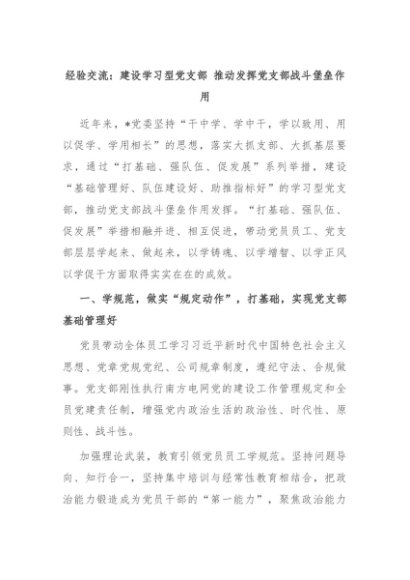 【七哥公文】2024年:经验交流:建设学习型党支部 推动发挥党支部战斗堡垒作用+更多免费公文+VX:QiGeGongWen2024